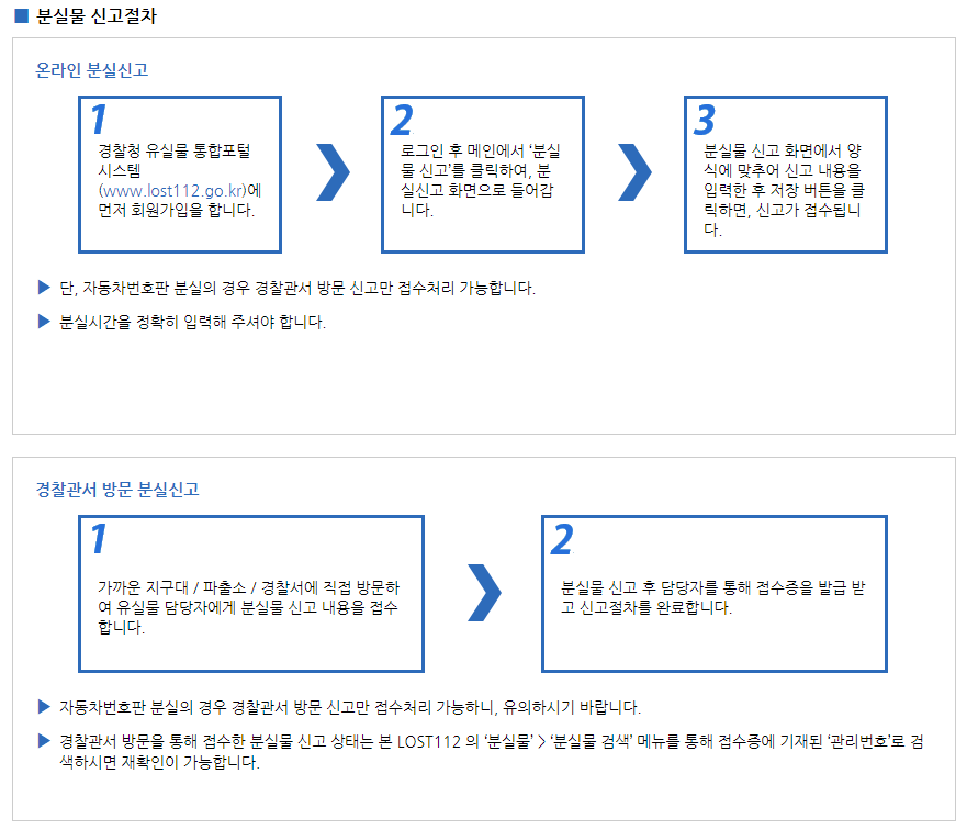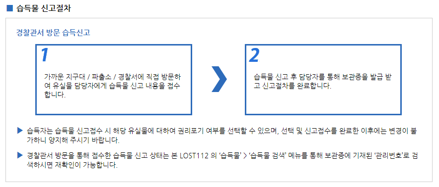 아래는 경찰청의 유실물 처리 절차이다.
