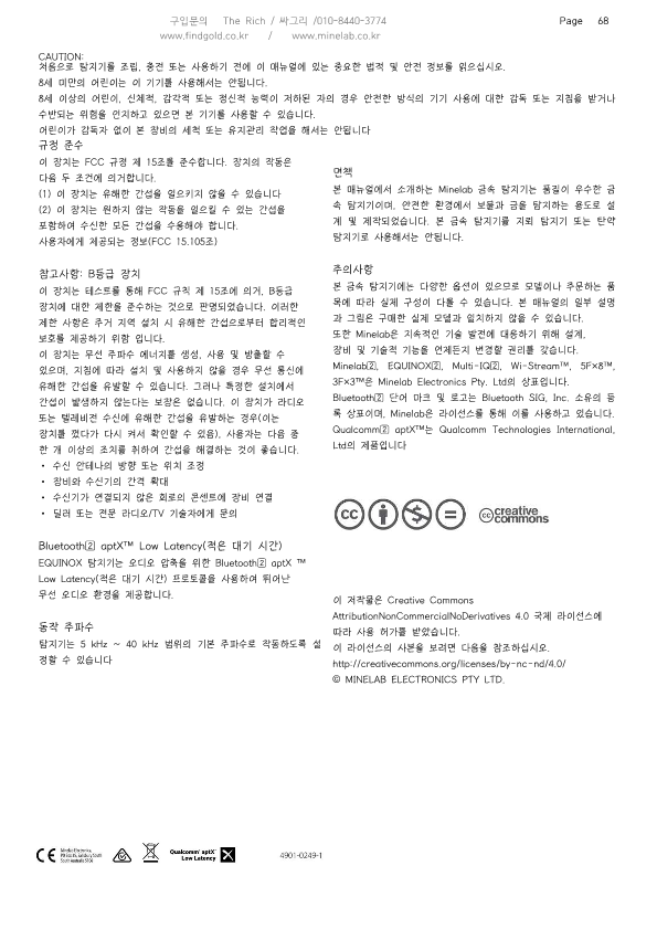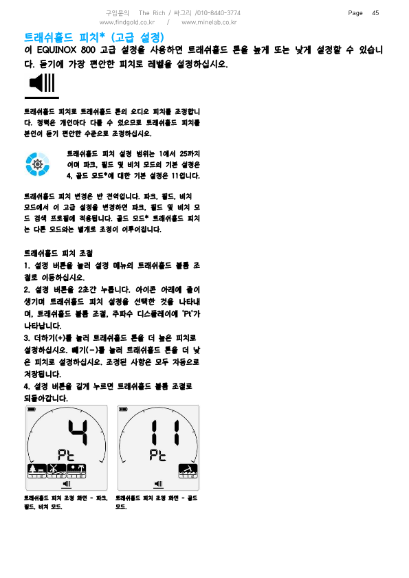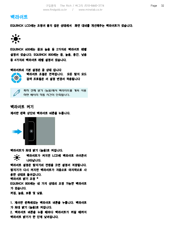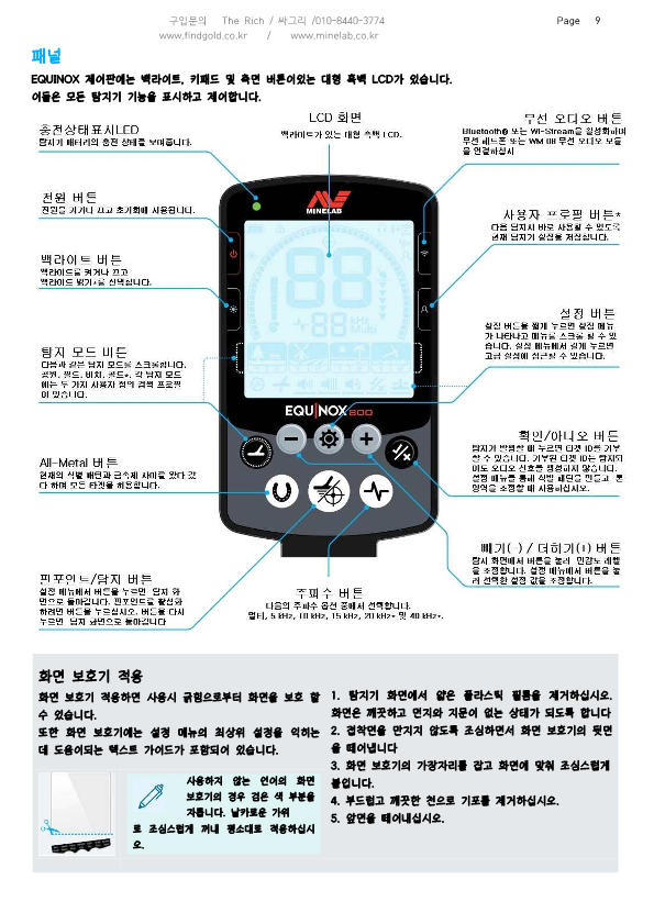 마인랩 에퀴녹스800 금속탐지기 한글사용설명서