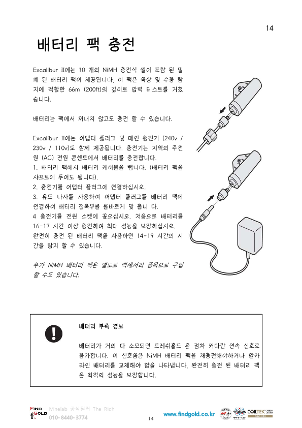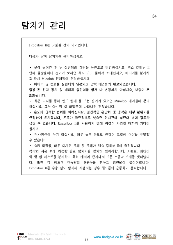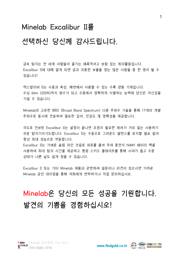 마인랩 수중금속탐지기 엑스컬리버2 한글 작동설멸서