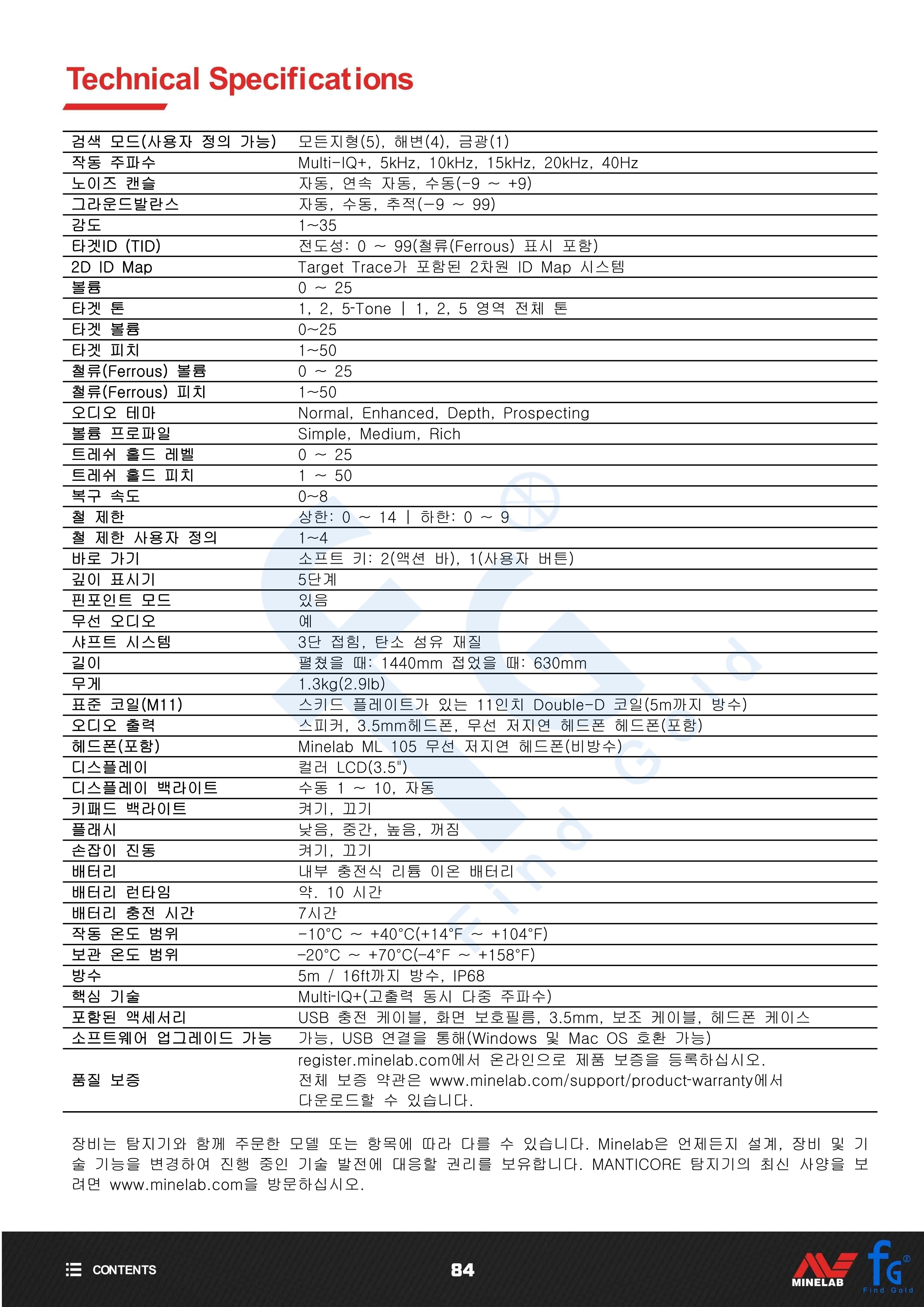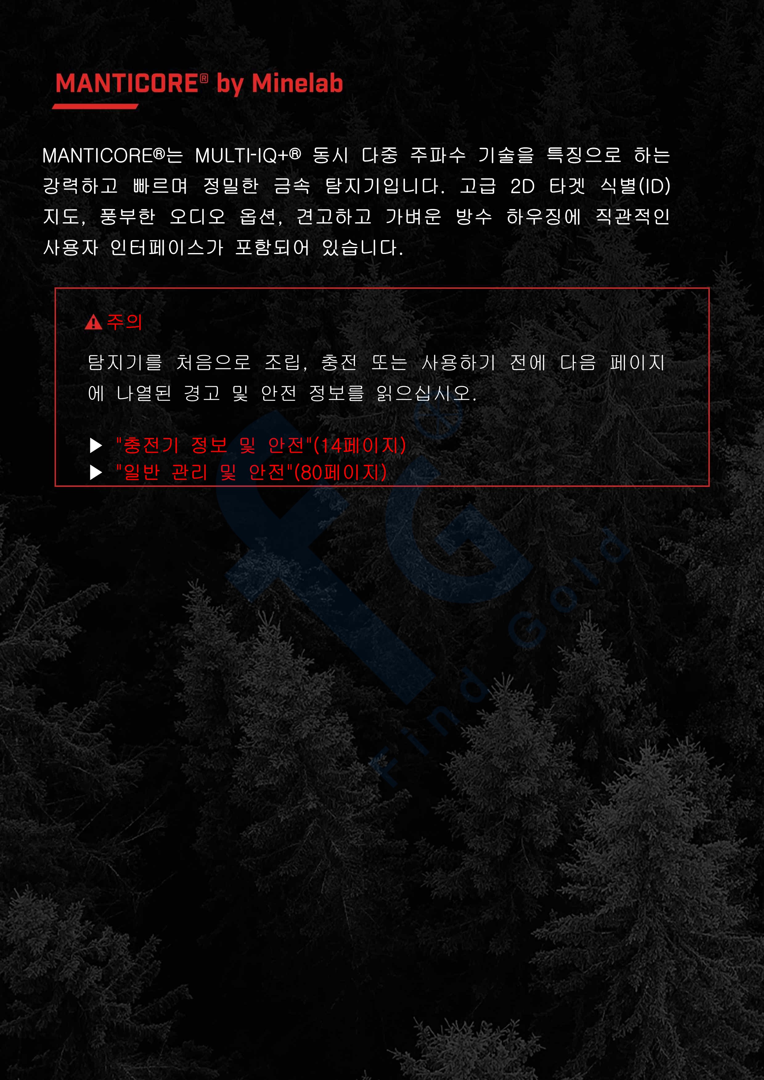 마인랩 맨티코어 금속탐지기 한글사용설명서