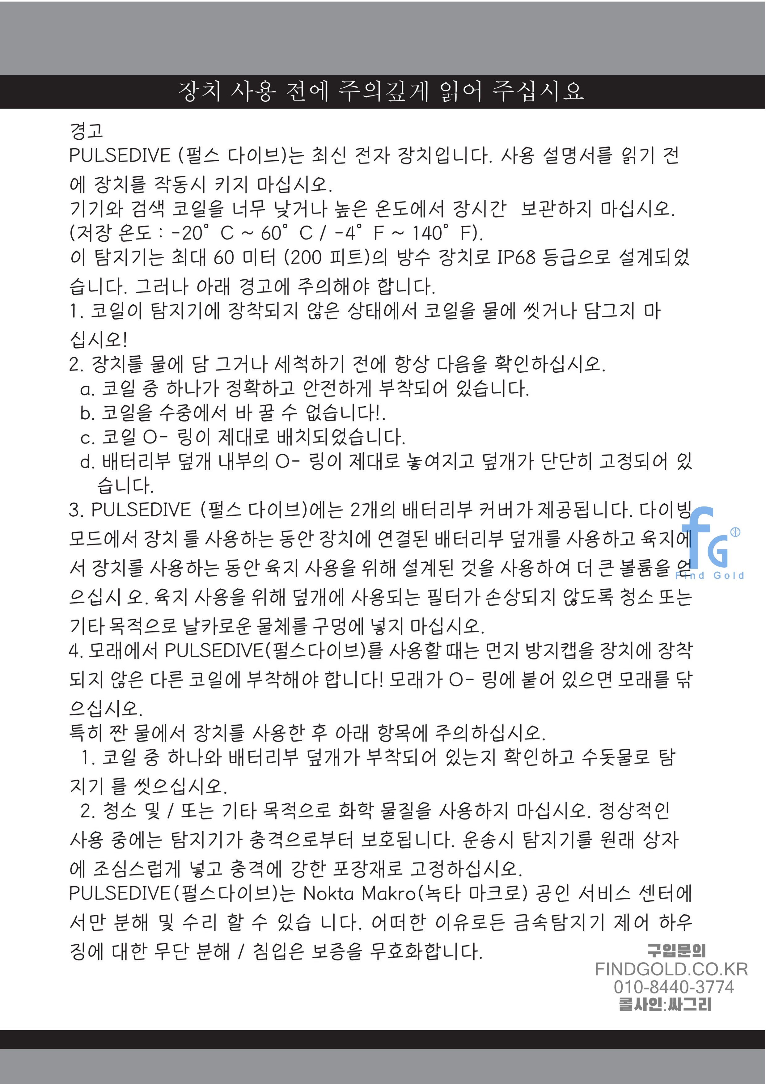 녹타 펄스다이브 한글 사용설명서.